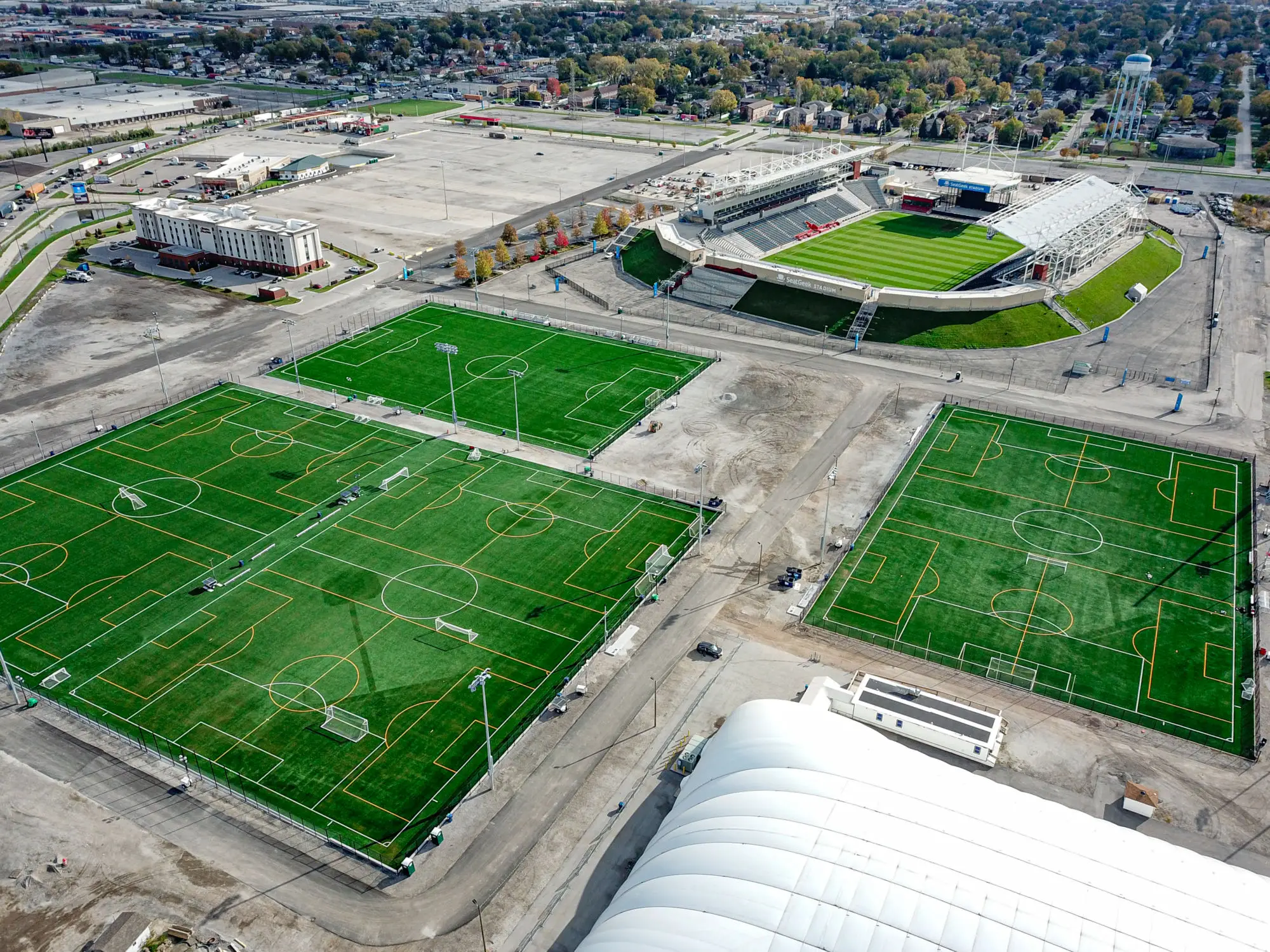 Conveniently located on the SeatGeek Stadium Property, the Village of Bridgeview Sports Fields network is comprised of 6 multi-purpose sports fields available for reservation as of 2025. The Bridgeview Sports Fields network provides much needed relief to local youth and adult leagues who, for many years, have been struggling to share the limited amount of fields in the surrounding area. The outdoor sports fields give league runners more options to manage time, space, games, and grow.